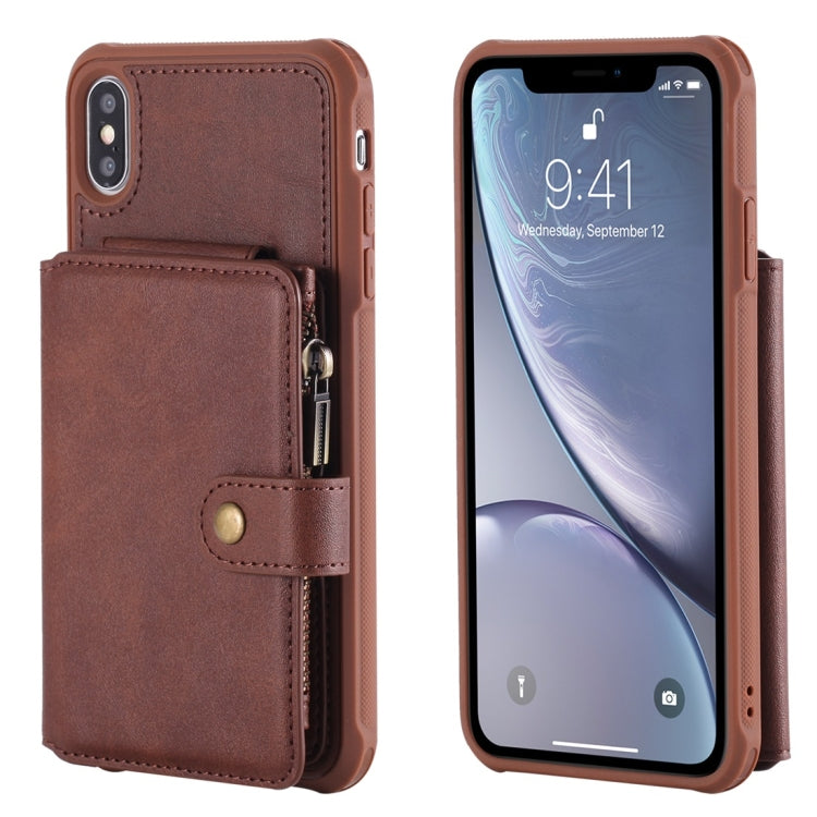 Funda Protectora para iPhone Xs Max con Cremallera Ranuras para Tarjetas Soporte y Billetera (Café)