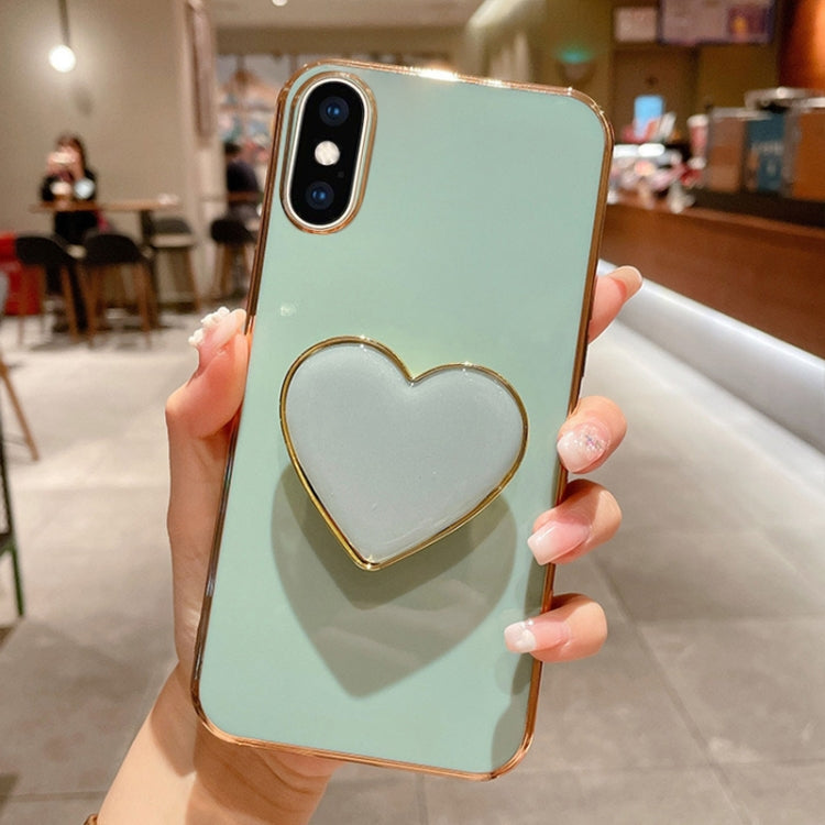 Funda para teléfono iPhone Xs Max Galvanoplastia Love Heart Holder TPU (Verde)