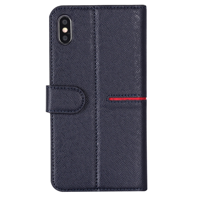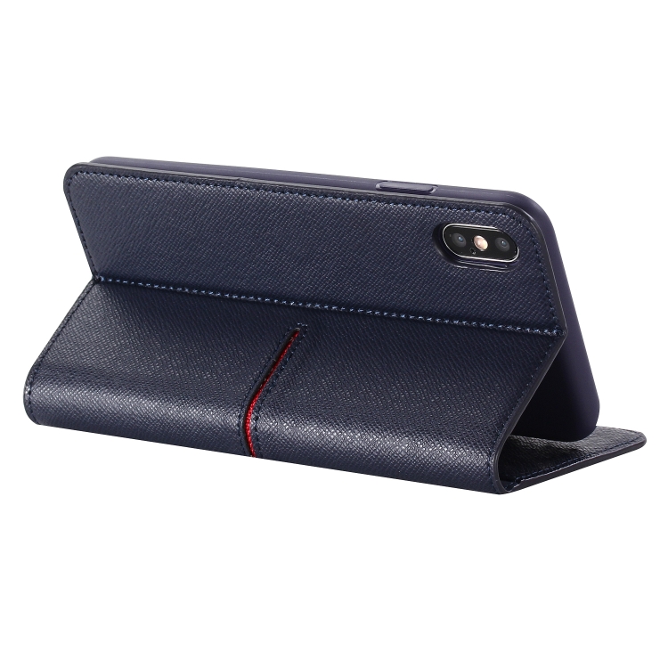 Funda Protectora Gebei para iPhone Xs Max con Tapa Horizontal Cuero de Grano Superior Soporte Ranuras Tarjetas Billetera Marco Fotos (Azul)