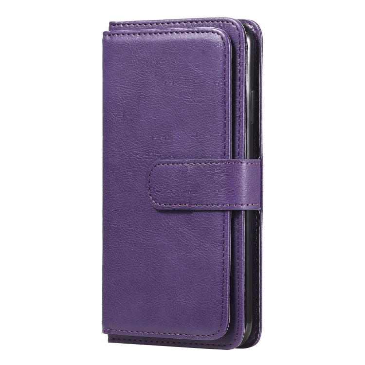 Funda para iPhone Xs Max Hebilla de Cobre Multifuncional Cuero con Tapa Horizontal y 10 Ranuras (Púrpura)