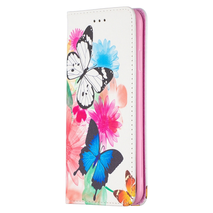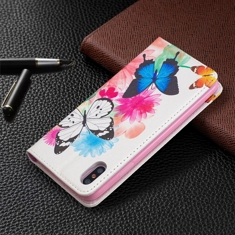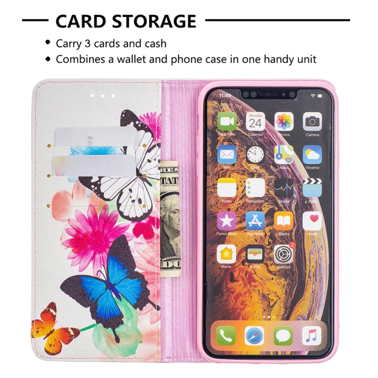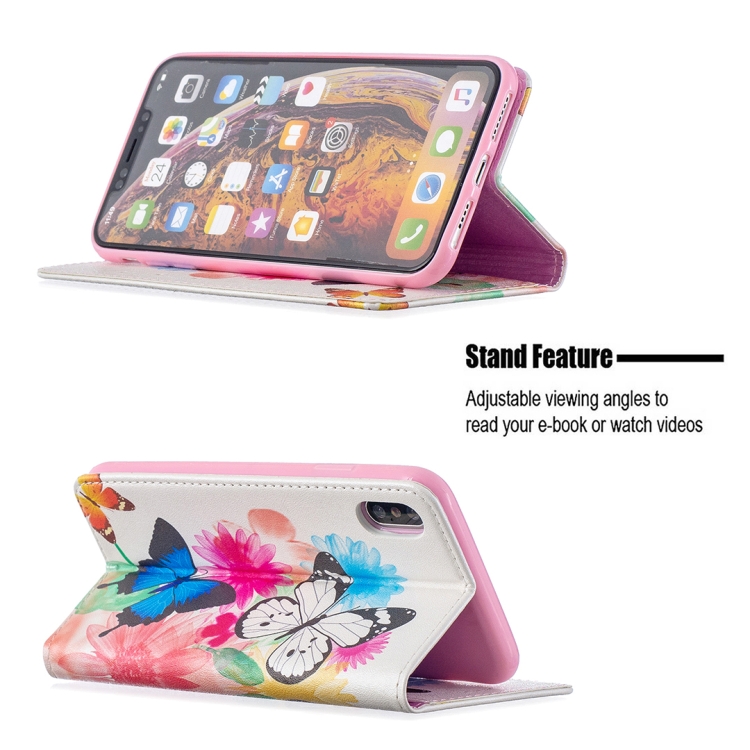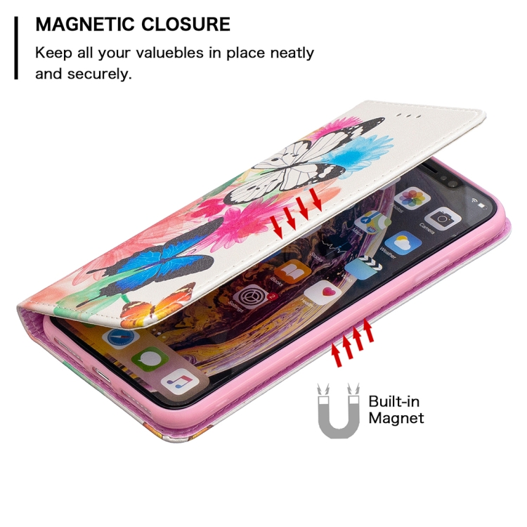 Estuche de Cuero PU para iPhone Xs Max con Tapa Magnética Horizontal Soporte Ranuras para Tarjetas Billetera (Dos Mariposas)