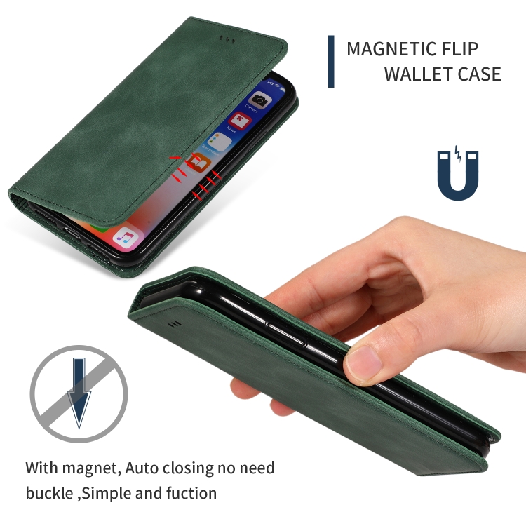 Funda para iPhone Xs Max Retro Skin Feel Business de Cuero con Tapa Horizontal Magnética (Verde Militar)