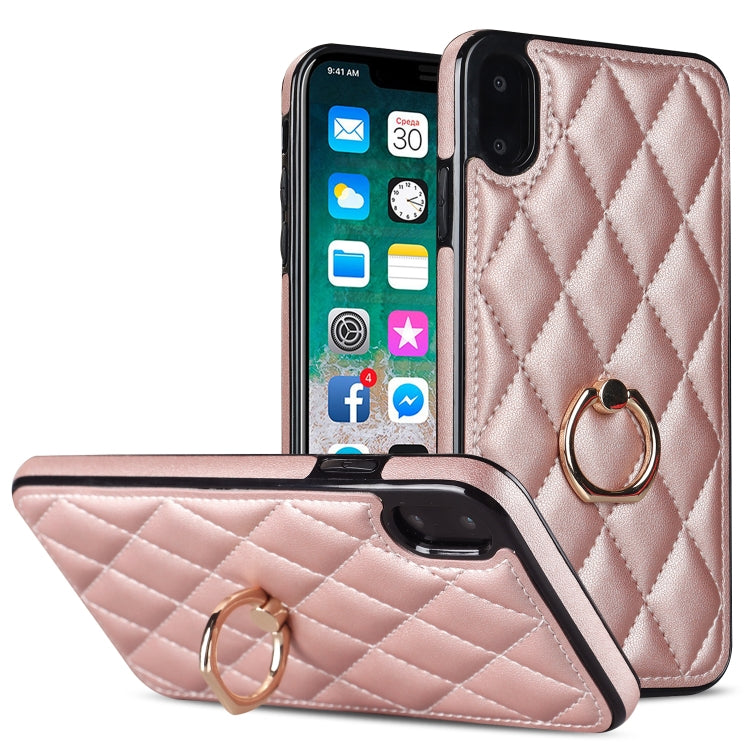 Funda de Cuero Rhombic para iPhone Xs Max con Soporte para Anillo (Oro Rosa)