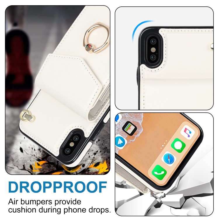Funda para iPhone Xs Max Ring Holder con Ranura para Tarjeta RFID (Beige)