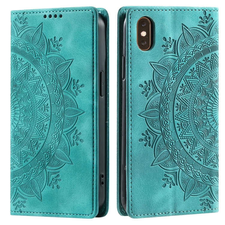 Funda de Cuero Magnética Totem para iPhone Xs Max en Relieve (Verde)