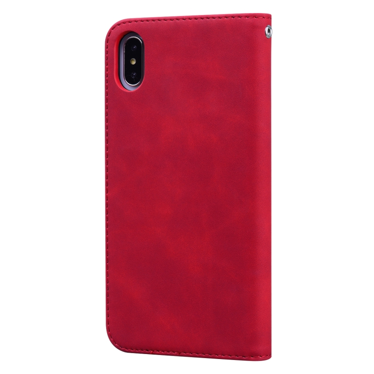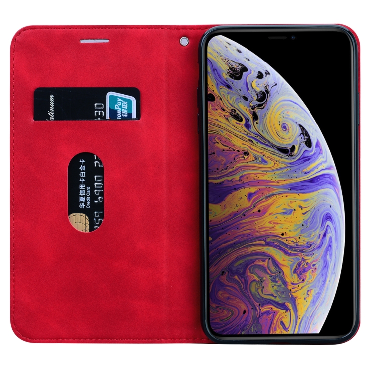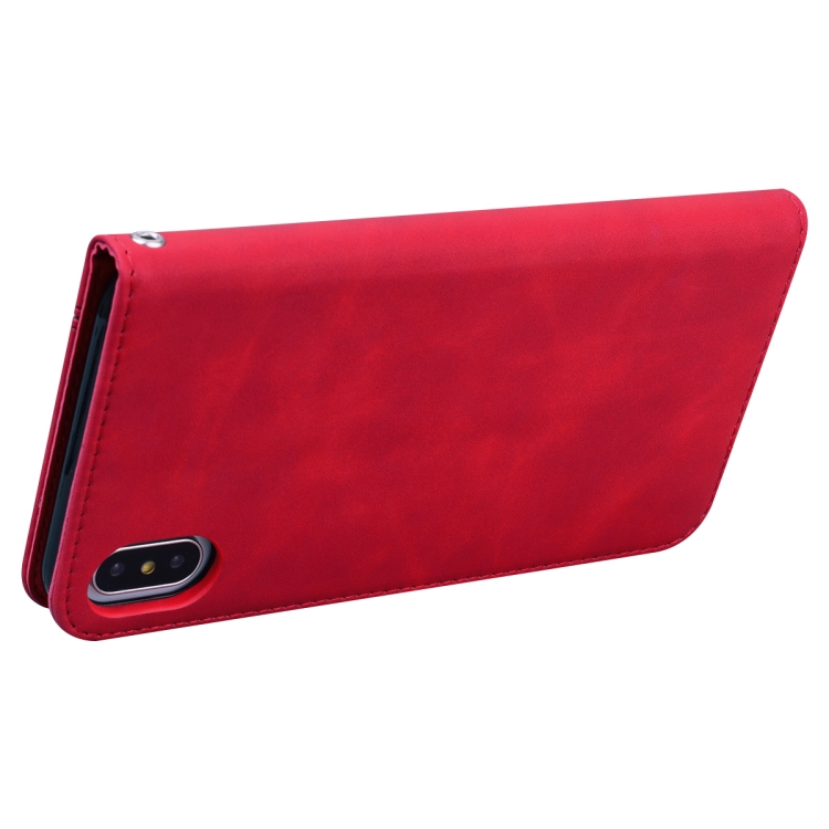 Estuche para iPhone Xs / X de Cuero PU con Tapa Horizontal Magnética, Soporte, Ranura para Tarjeta y Cordón (Rojo)