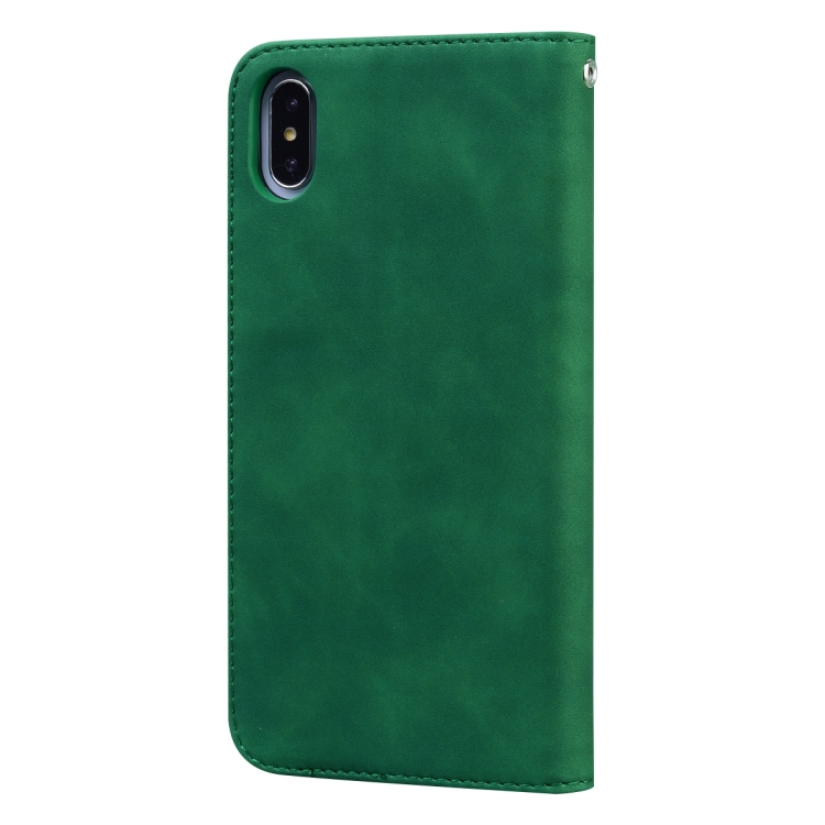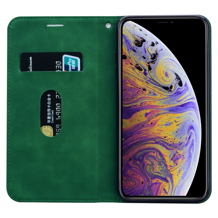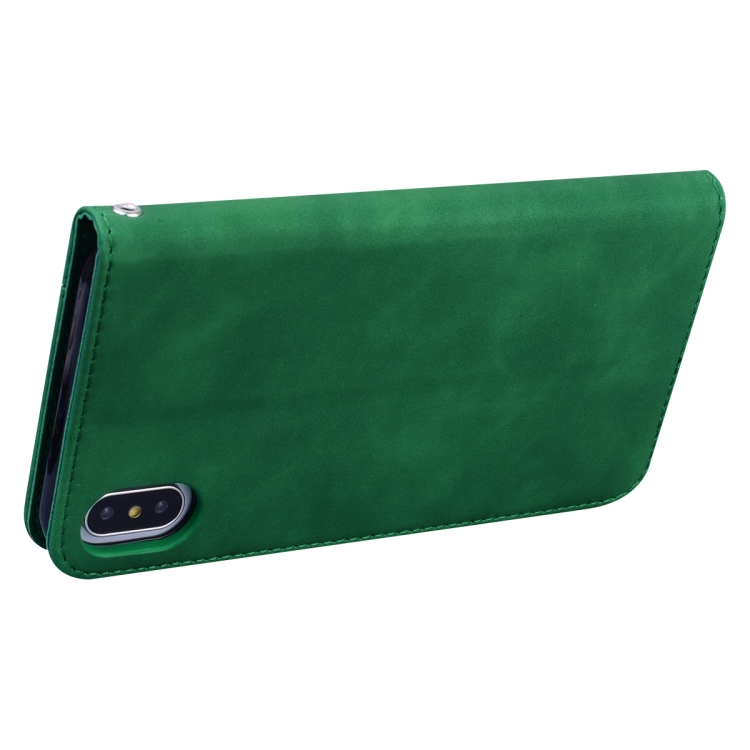 Estuche de Cuero de Pu para iPhone Xs / X con Tapa Horizontal Magnética, Soporte, Ranura para Tarjeta y Cordón (Verde)