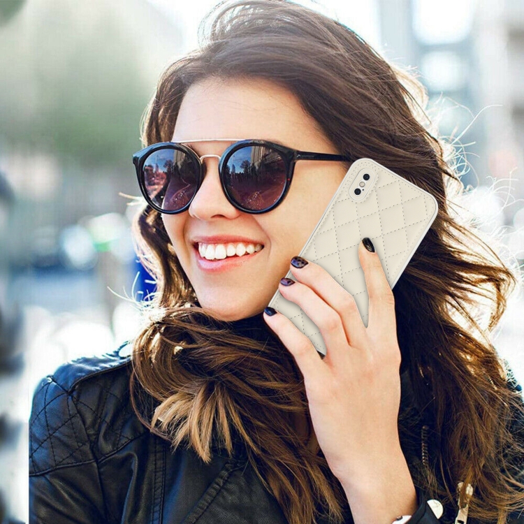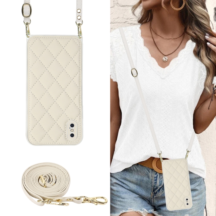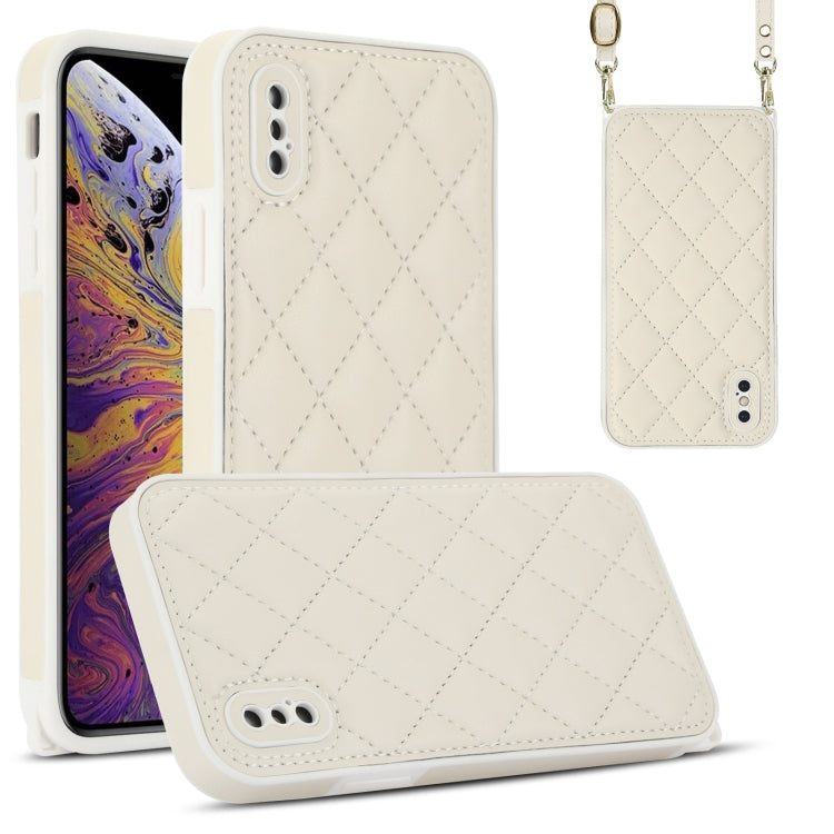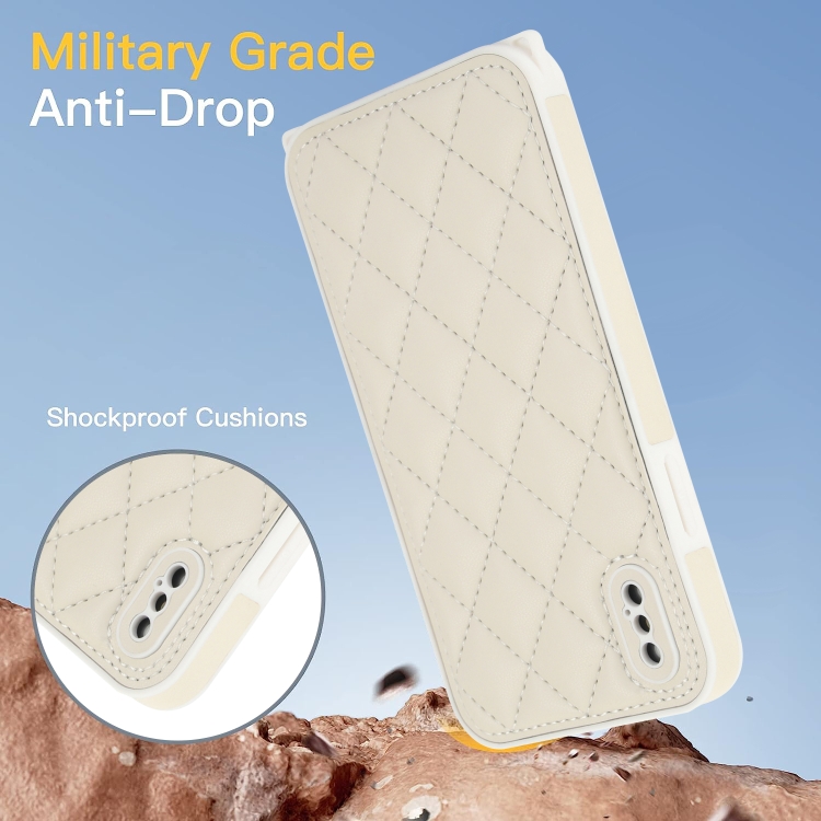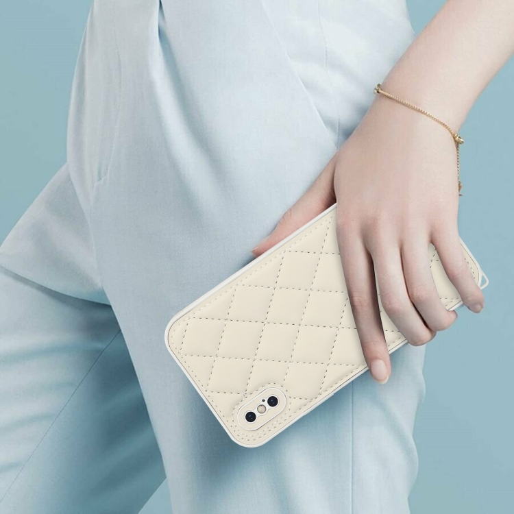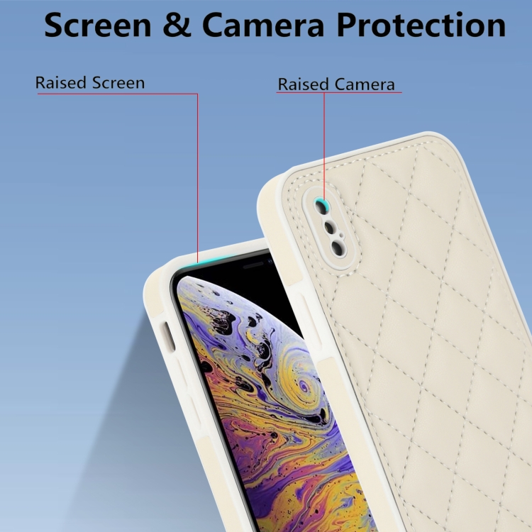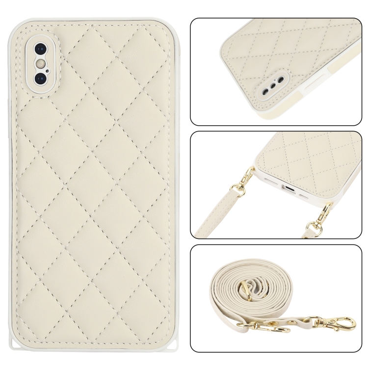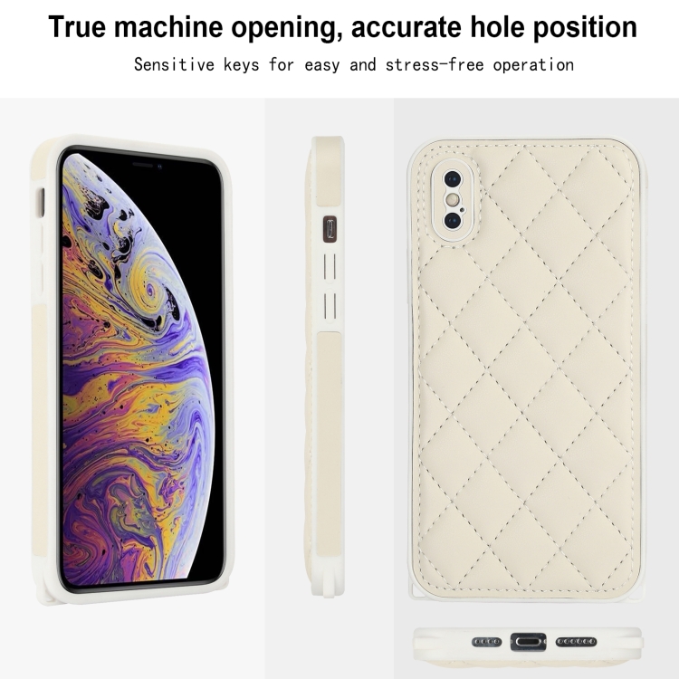 Estuche para Teléfono iPhone Xs X Textura Rómbica Cordón Doble (Blanco)