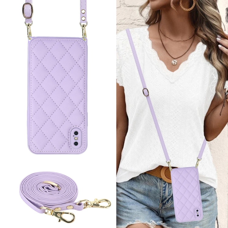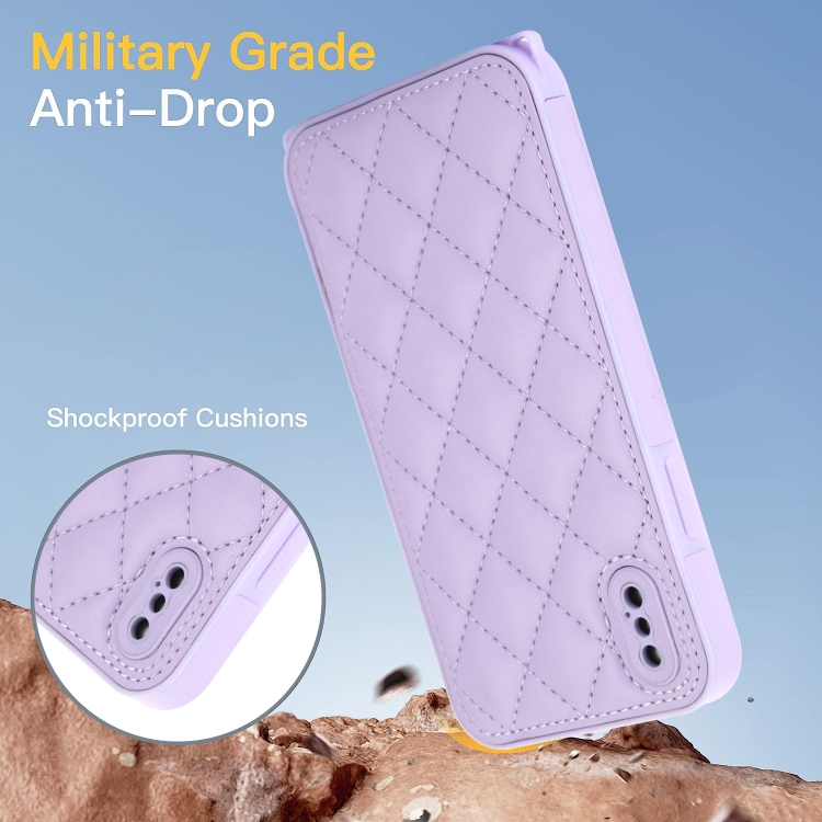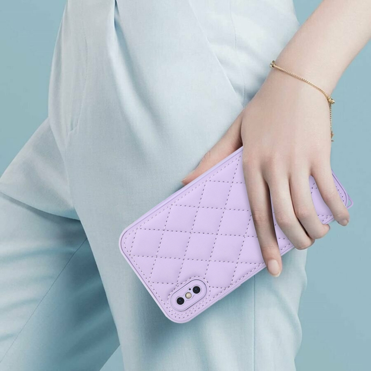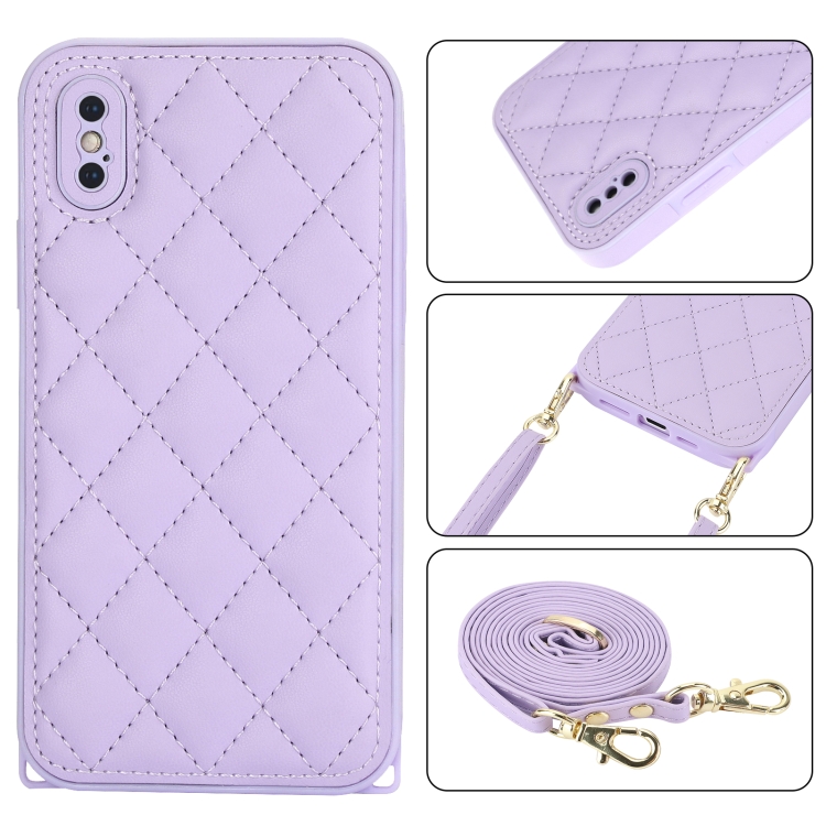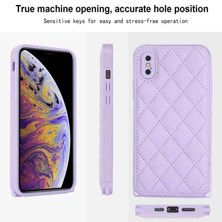 Estuche para Teléfono iPhone Xs / X Textura Rómbica Cordón Doble (Púrpura)