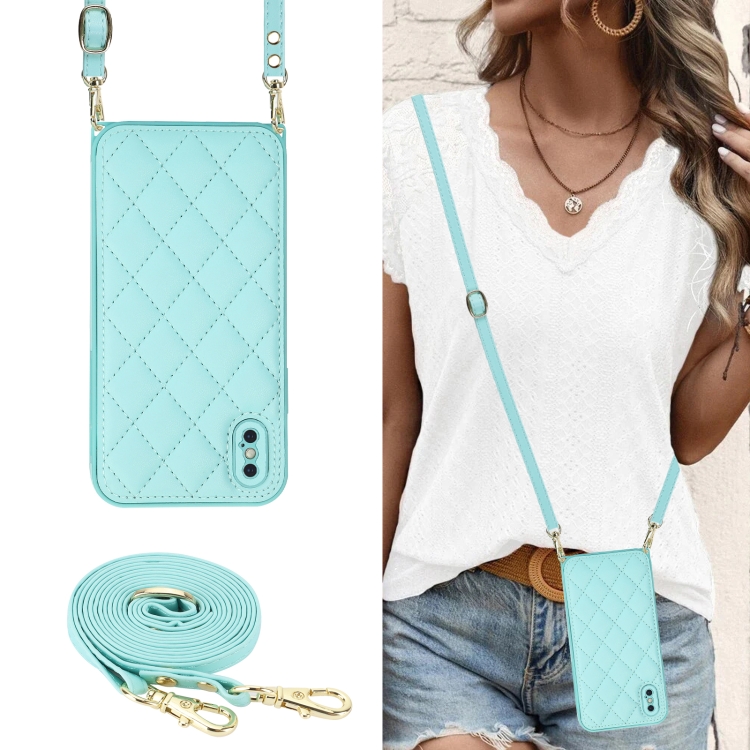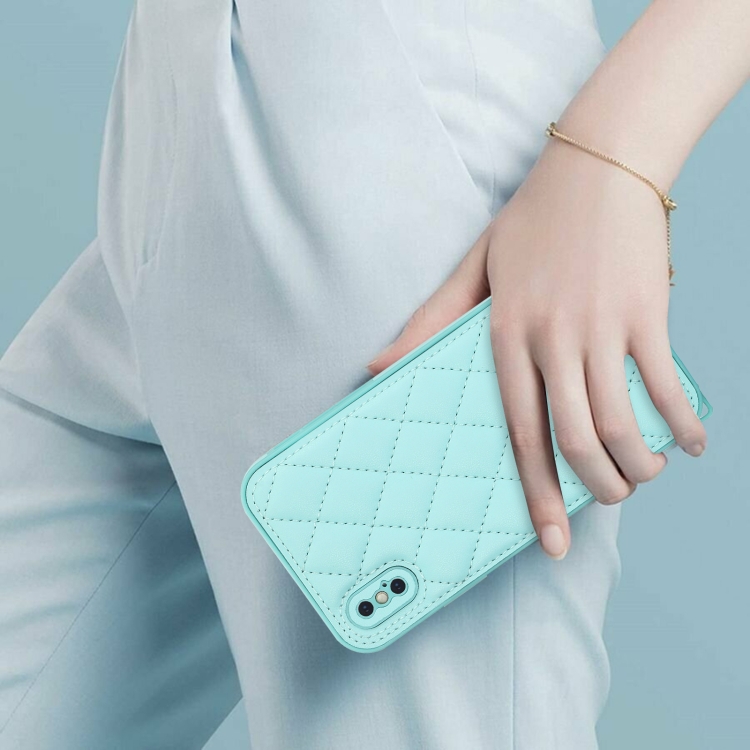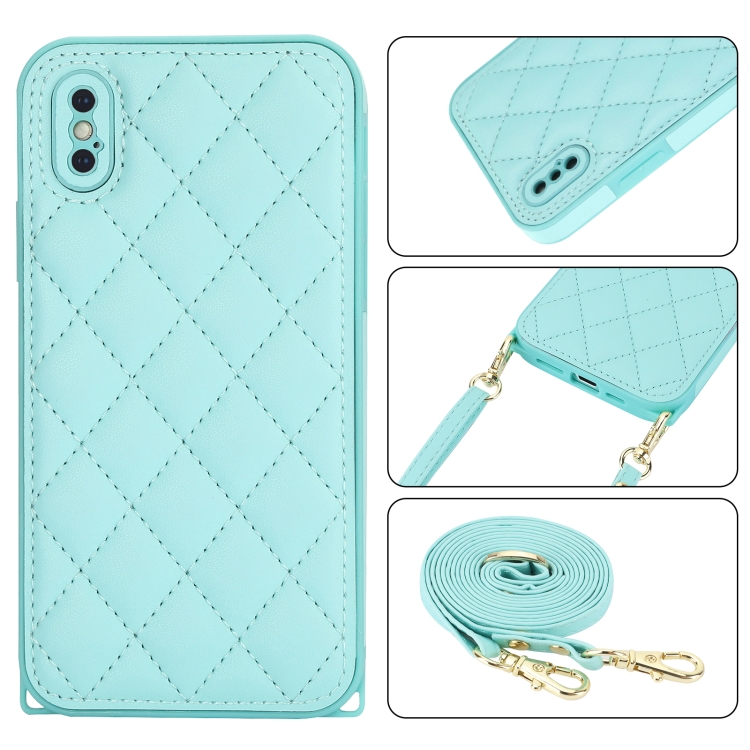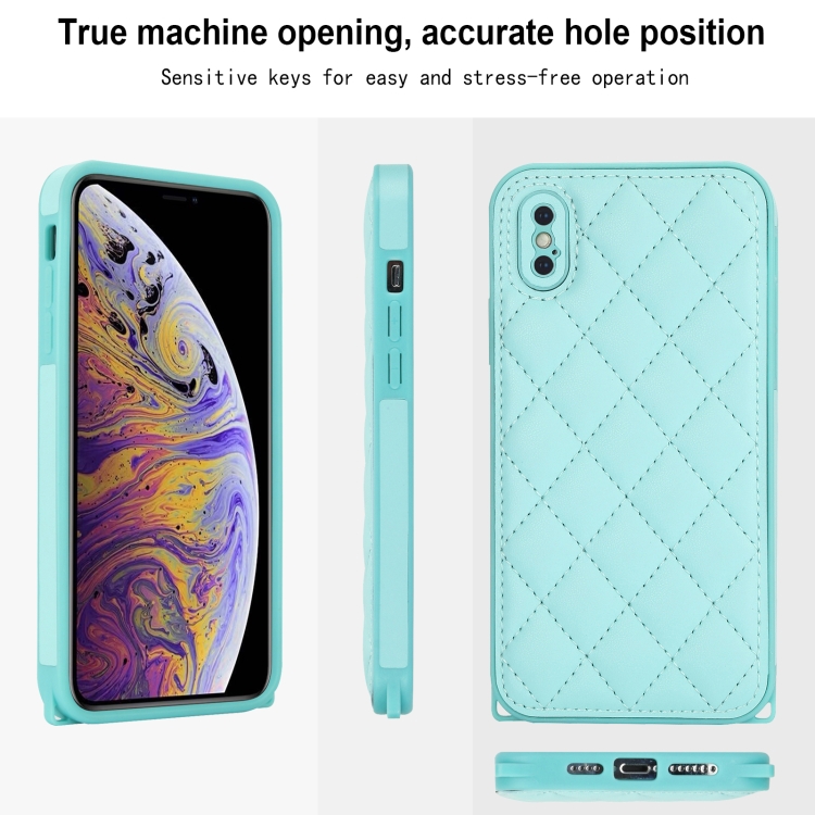 Estuche para Teléfono iPhone Xs / X Textura Rómbica Cordón Doble (Verde)