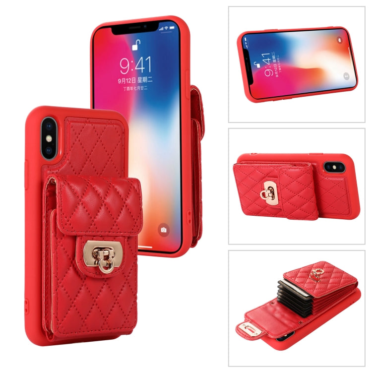 Funda para teléfono iPhone Xs / X con ranura para tarjeta de cuero (Rojo)