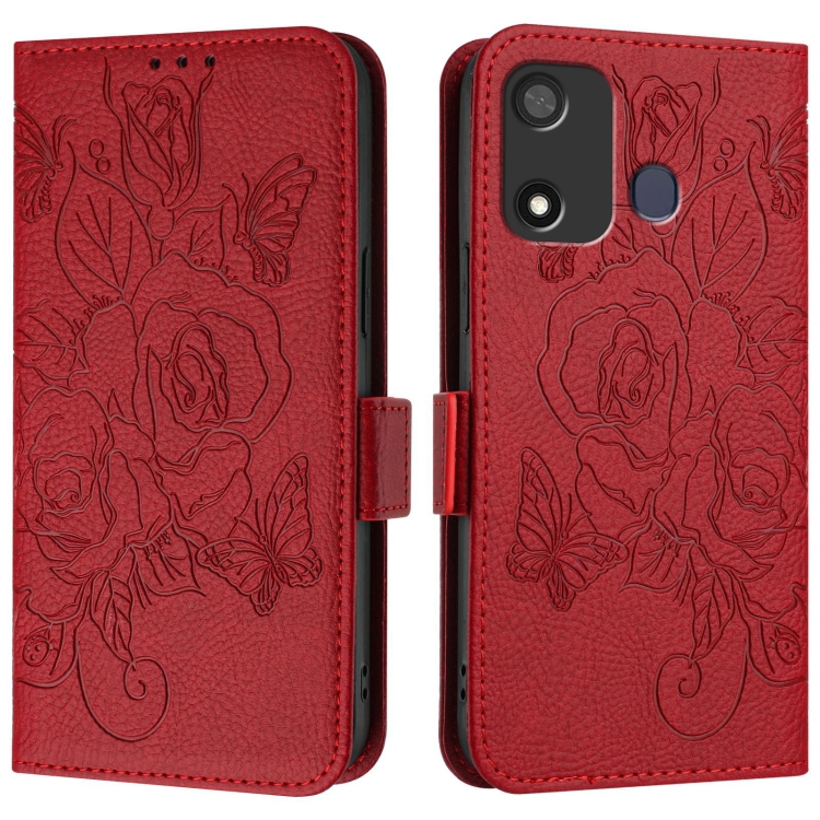 Estuche para Itel A27 de Cuero Antirrobo RFID con Rosa en Relieve (Rojo)