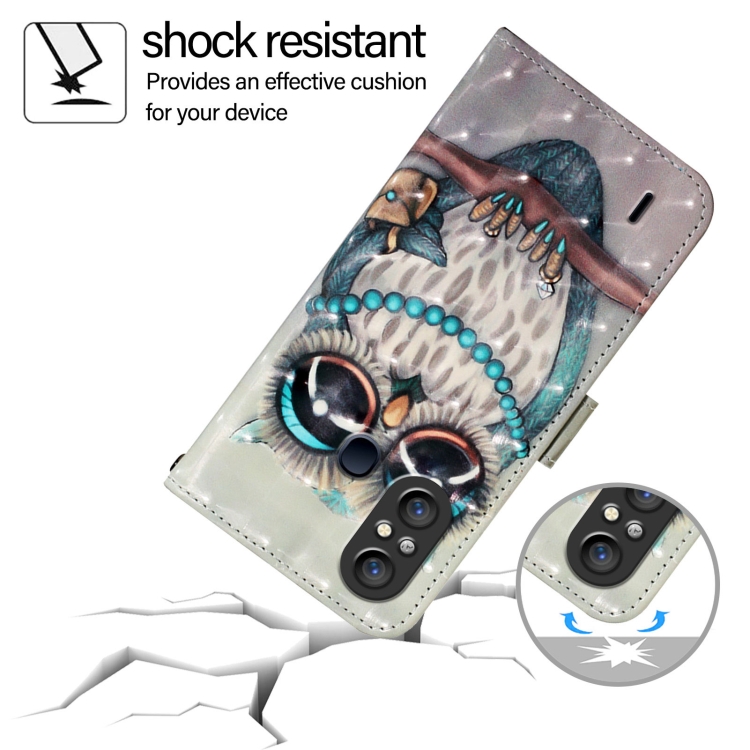 Funda para Teléfono Itel A58 / A49 de Cuero con Tapa Horizontal y Pintura 3D (Búho Gris)
