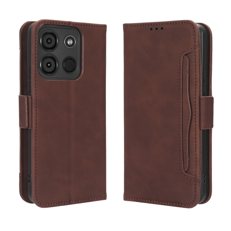Funda de Cuero para Itel A60 con Textura Becerro y Ranuras para Tarjetas (Marrón)