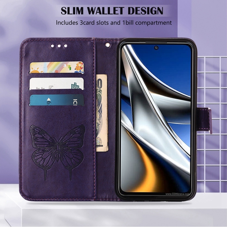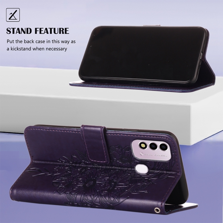 Funda para Itel P37 Vision 2S de Cuero con Mariposa en Relieve (Morado Oscuro)