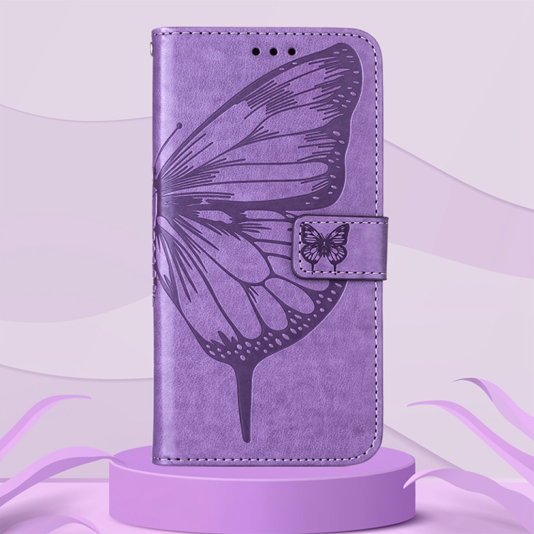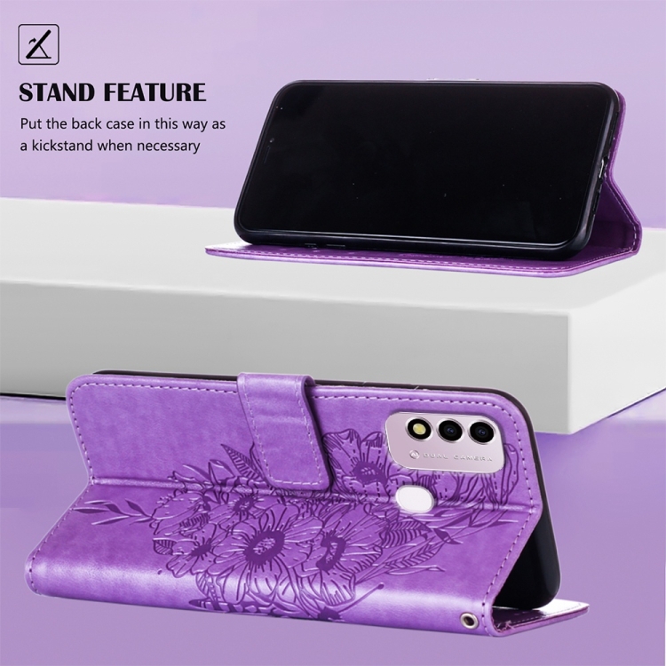 Funda para Itel P37 y Vision 2S Retina de Cuero con Mariposa en Relieve (Purple Claro)