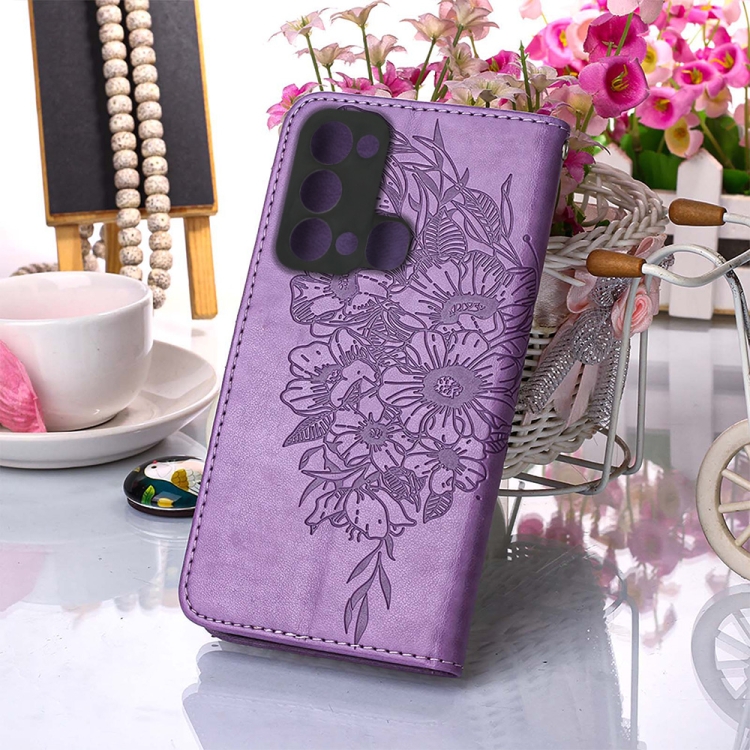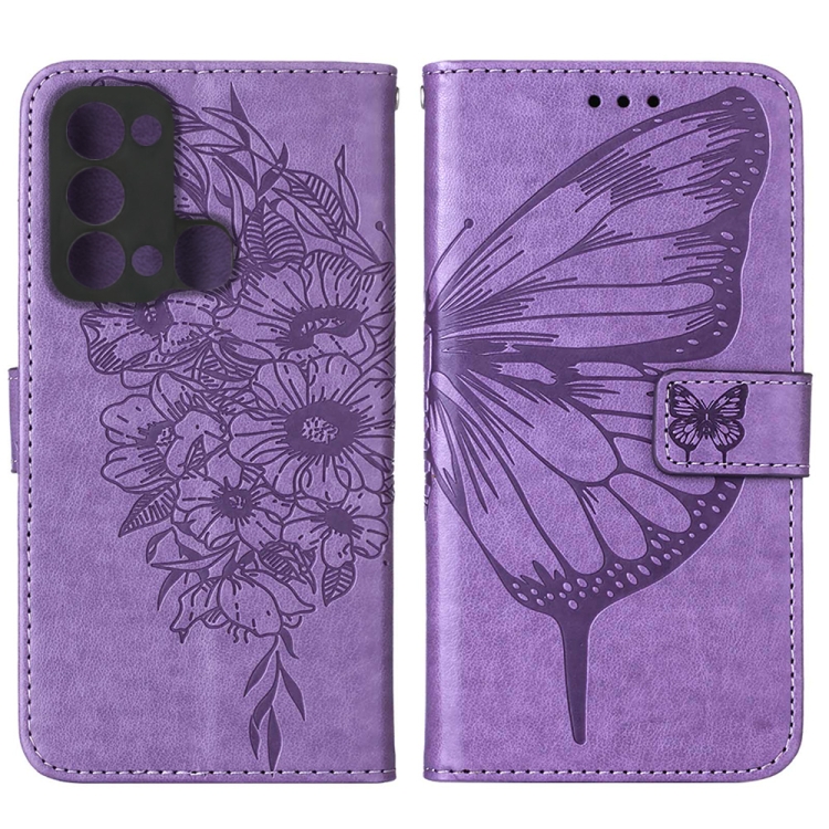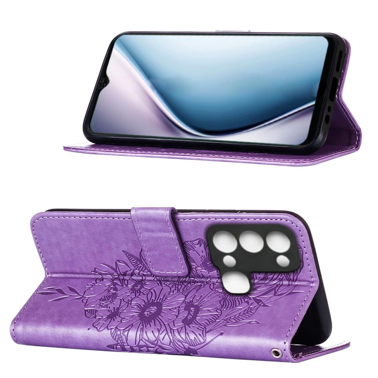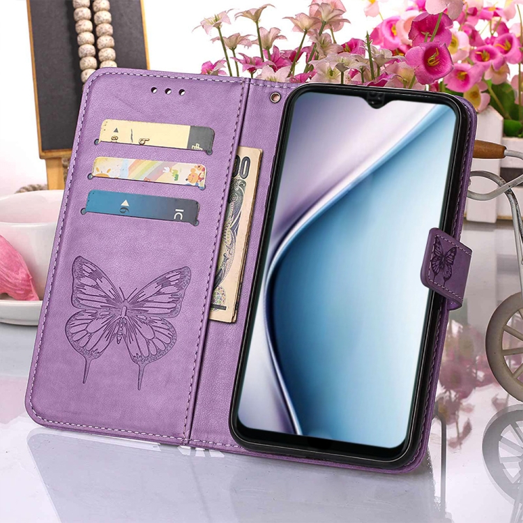 Estuche para Itel P38 S17 S1661W Vision 3 de Cuero con Tapa de Mariposa en Relieve (Púrpura)