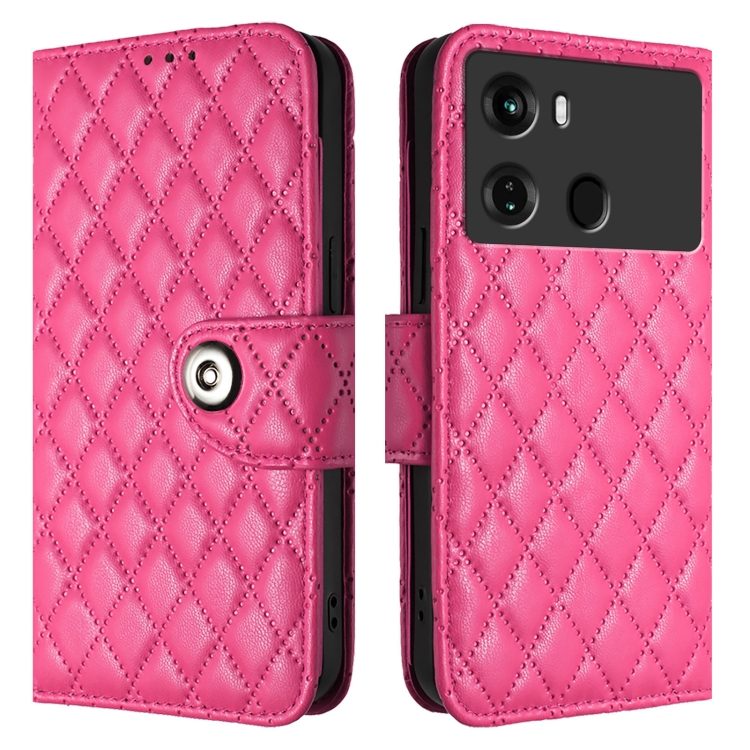 Funda para Itel P40 de Cuero con Tapa Textura Rómbica y Cordón (Rojo Rosa)