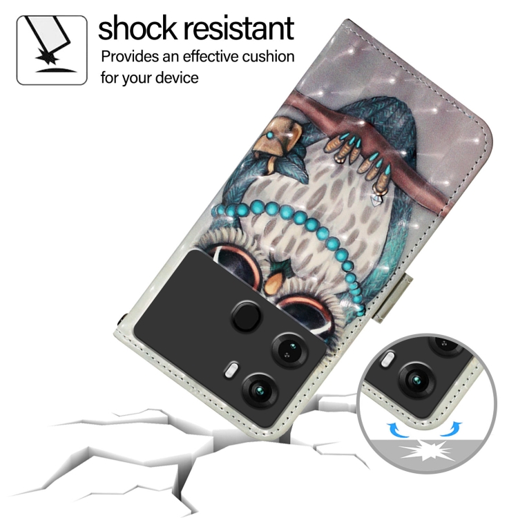 Funda para Itel P40 de Cuero con Tapa Horizontal y Pintura 3D (Búho Gris)