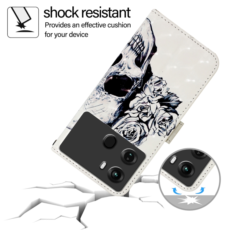 Funda para Itel P40 de Cuero con Tapa Horizontal y Pintura 3D (Calavera)