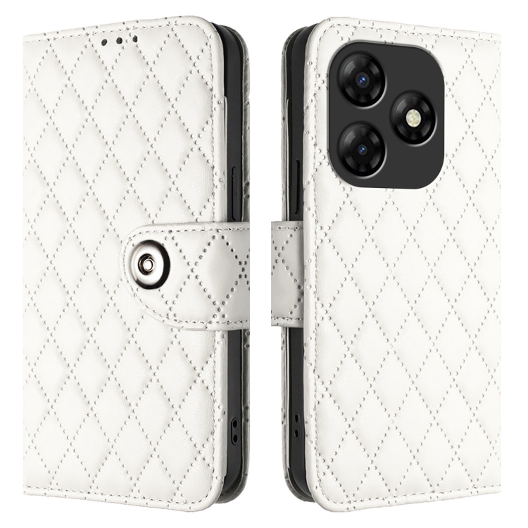 Funda para Itel P55 4G de Cuero con Tapa, Textura Romboidal y Cordón (Blanco)