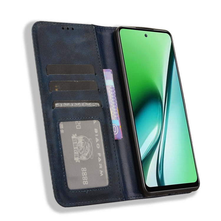 Funda para Itel Rs4 de Cuero con Textura Retro y Hebilla Magnética (Azul)