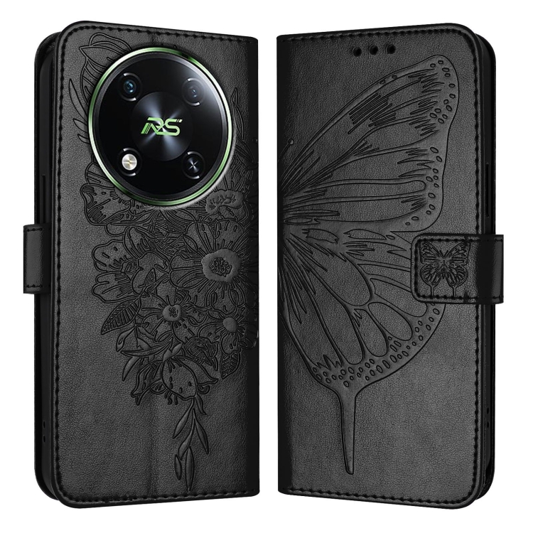 Funda para Teléfono Itel Rs4 S666Ln Cuero con Mariposa en Relieve (Negro)
