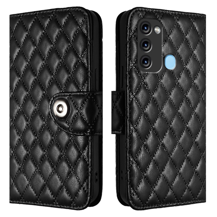 Funda para Teléfono Itel S17 Vision 3 con Tapa de Cuero Textura Rómbica y Cordón (Negro)