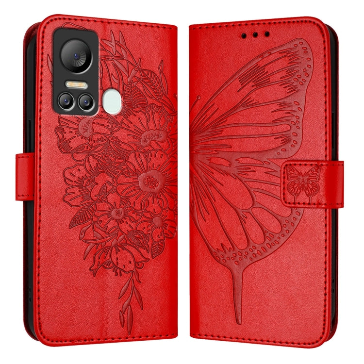 Funda para Itel S18 y Vision 5 de Cuero con Mariposa en Relieve (Rojo)