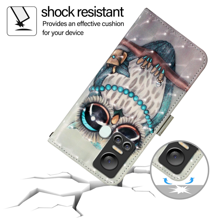 Funda de Cuero para Itel S18 y Vision 5 con Tapa Horizontal y Pintura 3D (Búho Gris)