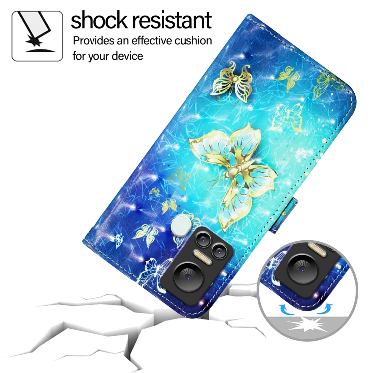 Funda para Teléfono Itel S18 Vision 5 de Cuero con Tapa Horizontal y Pintura 3D (Mariposa Dorada)