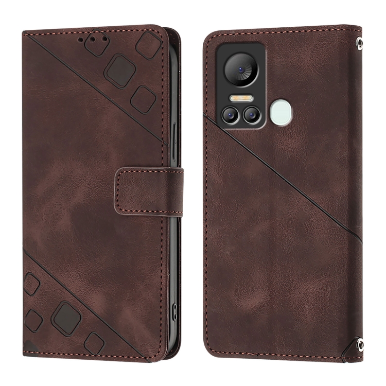 Funda de Cuero para Itel S18 y Vision 5 Skin Feel en Relieve (Marrón)