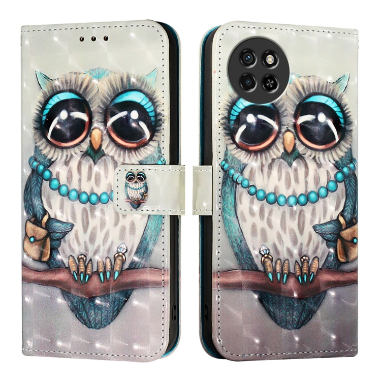 Funda para Teléfono Itel S23 de Cuero con Tapa Horizontal y Pintura 3D (Búho Gris)