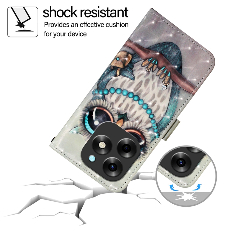Funda de Cuero + Tapa Horizontal para Itel S23 con Pintura 3D (Búho Gris)