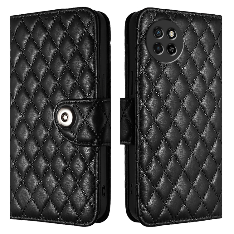 Funda para Teléfono Itel S23 S665L de Cuero con Tapa Textura Rómbica y Cordón (Negro)