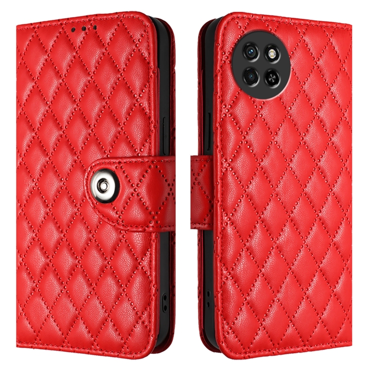 Funda para Itel S23 S665L de Cuero con Tapa, Textura Rómbica y Cordón (Rojo)