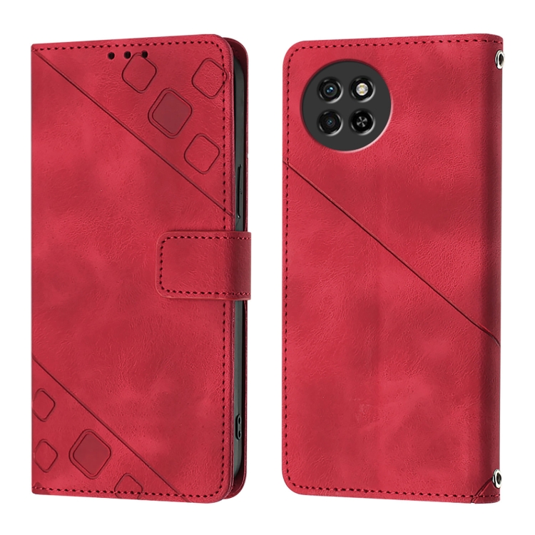 Funda de Cuero para Itel S23 Skin Feel con Relieve (Rojo)