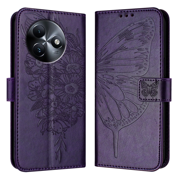 Funda de Cuero para Itel S24 con Mariposa en Relieve (Púrpura Oscuro)