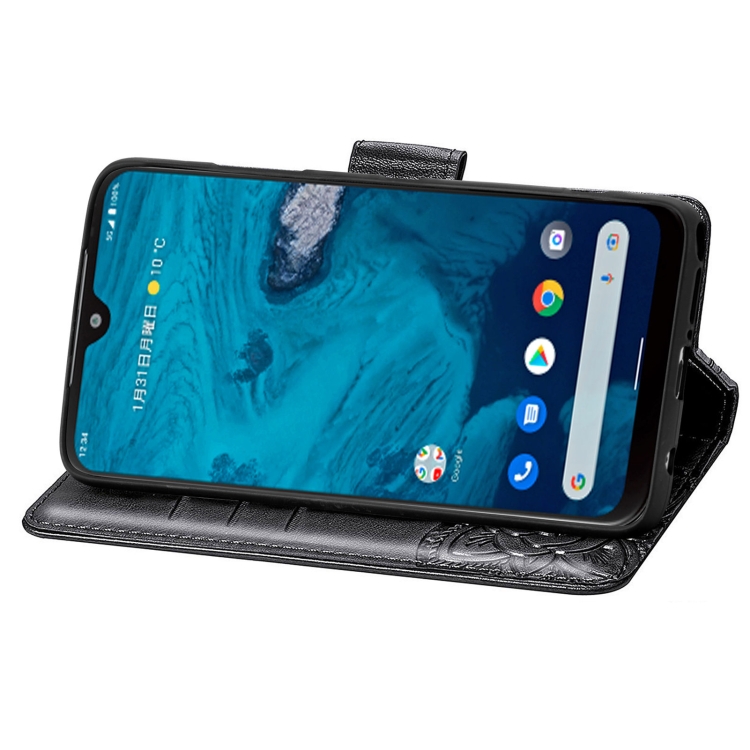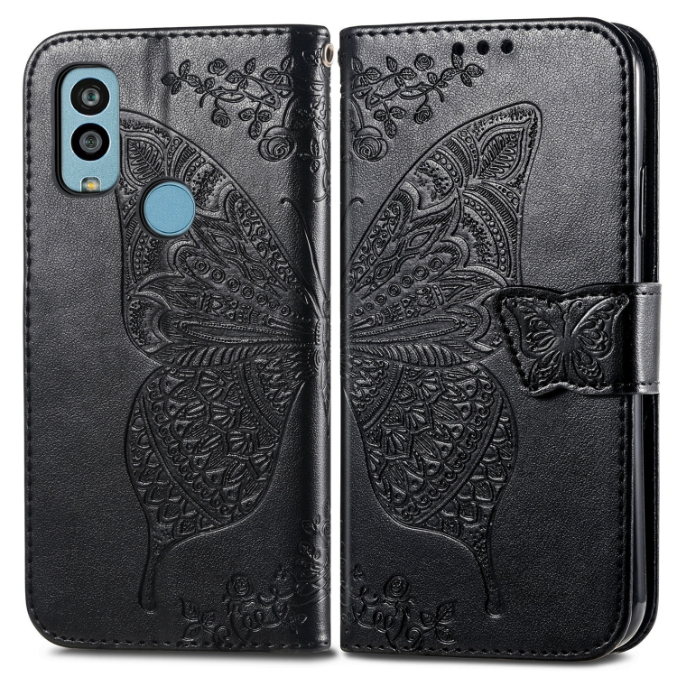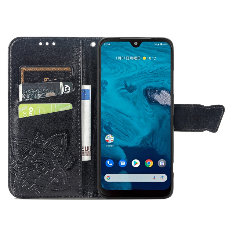 Estuche para Kyocera Android One S10 Butterfly Love Flower de Cuero En Relieve (Negro)