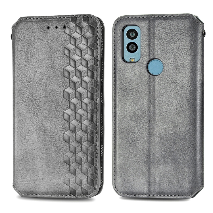 Funda de Cuero Magnético para Kyocera Android One S10 Cubic Grid (Gris)