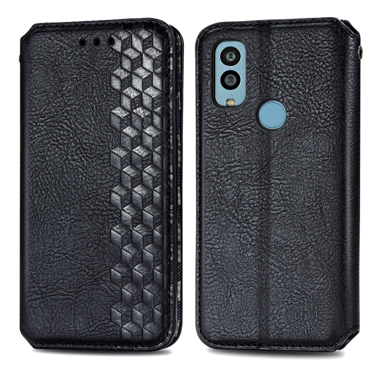 Funda de Cuero Magnético para Kyocera Android One S10 Cubic Grid (Negro)