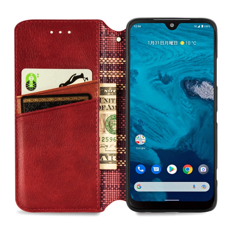 Funda de Cuero Magnético para Kyocera Android One S10 Cubic Grid (Rojo)
