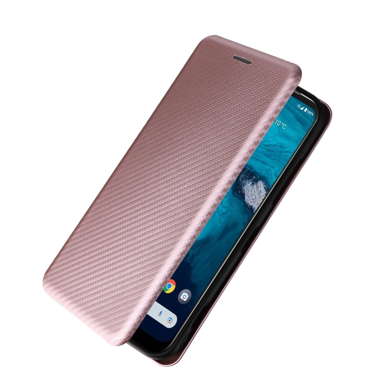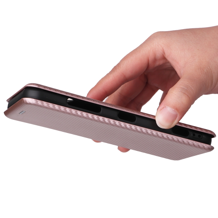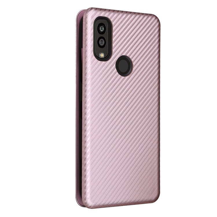 Funda de Cuero para Kyocera Android One S10 con Textura de Fibra de Carbono (Rosa)