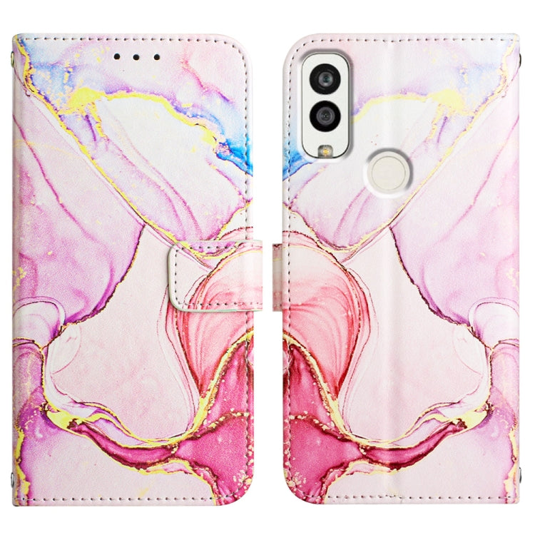 Funda Flip de Cuero para Kyocera Android One S9/KC-S304/Digno Sanga Edition Pt003 con Patrón Mármol (Oro Rosa)