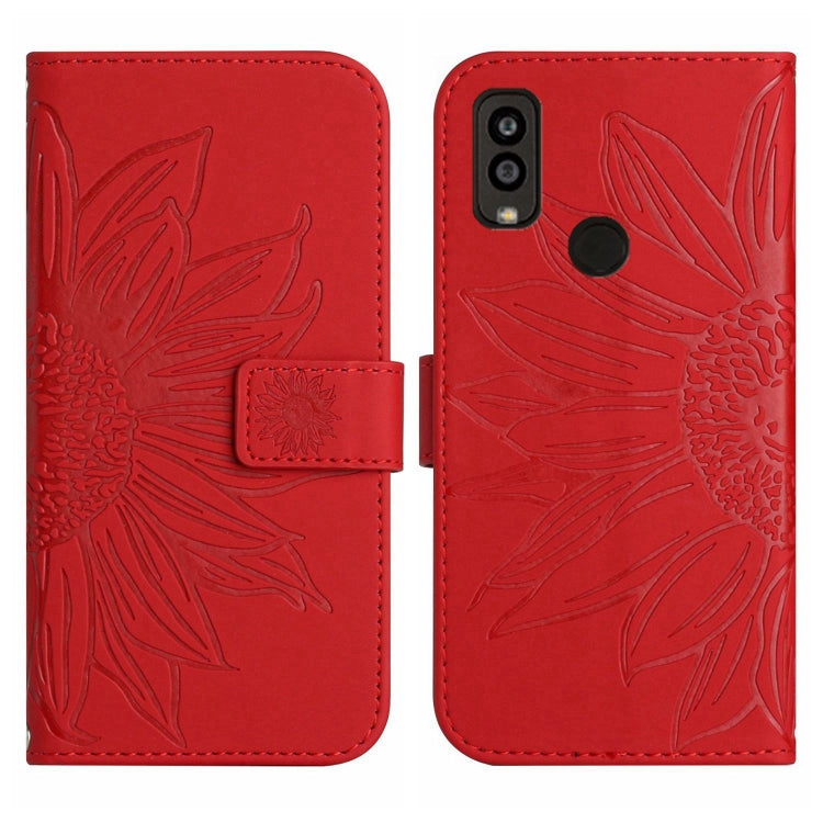 Funda Flip de Cuero Kyocera Android One S9 con Cordón y Diseño Sun Flower (Rojo)