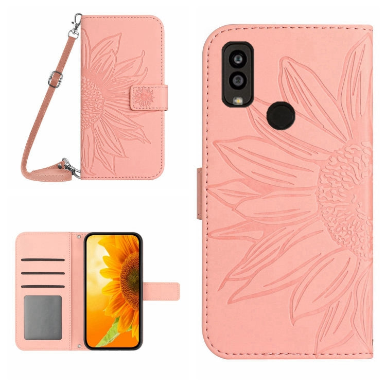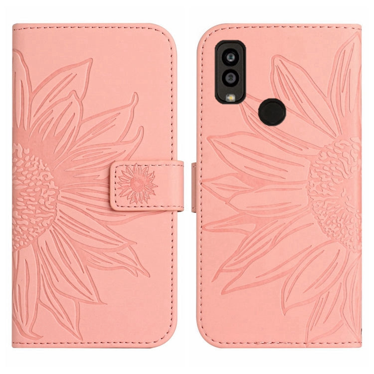 Funda Flip de Cuero Kyocera Android One S9 Skin Feel con Cordón y Diseño Sun Flower (Rosa)