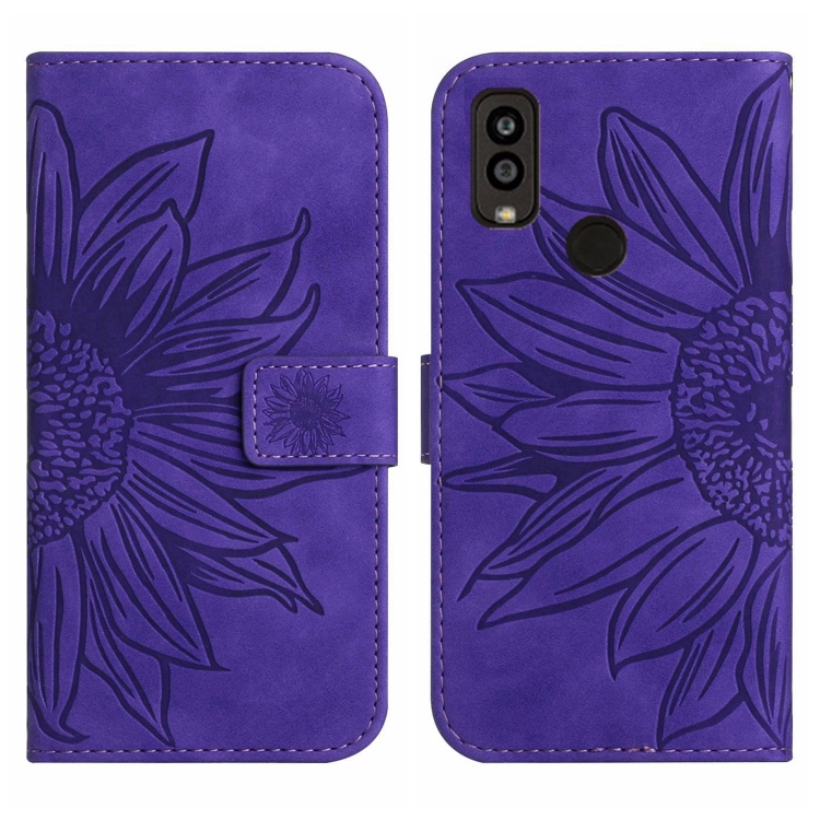 Funda de Cuero con Tapa para Kyocera Android One S9 Skin Feel Sun Flower con Cordón (Púrpura Oscuro)