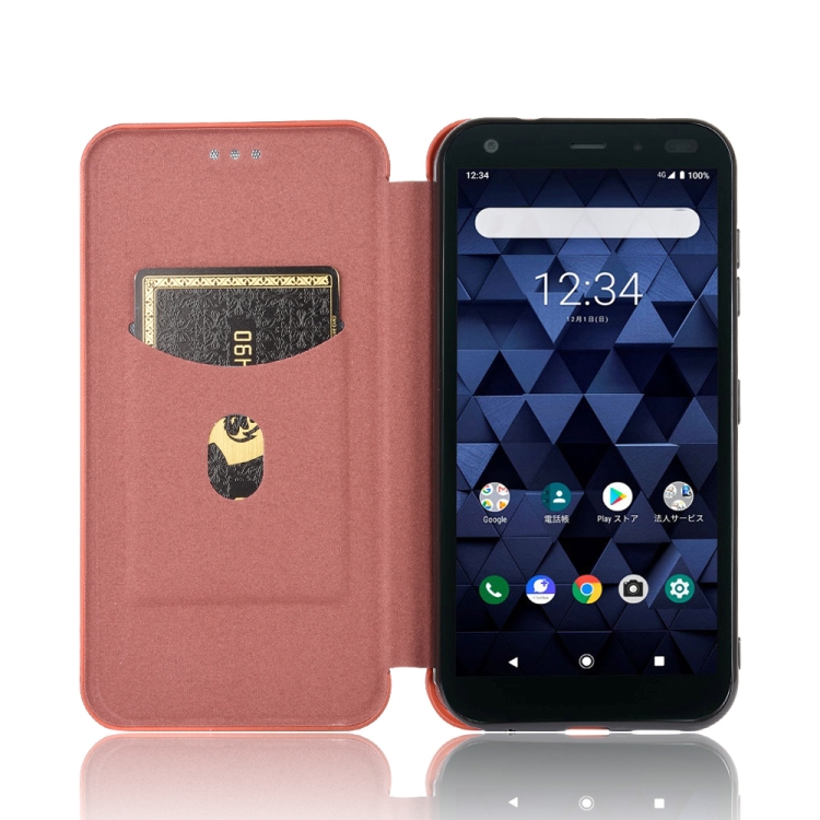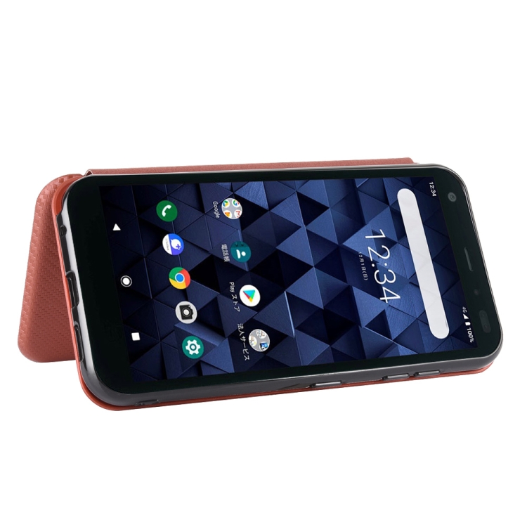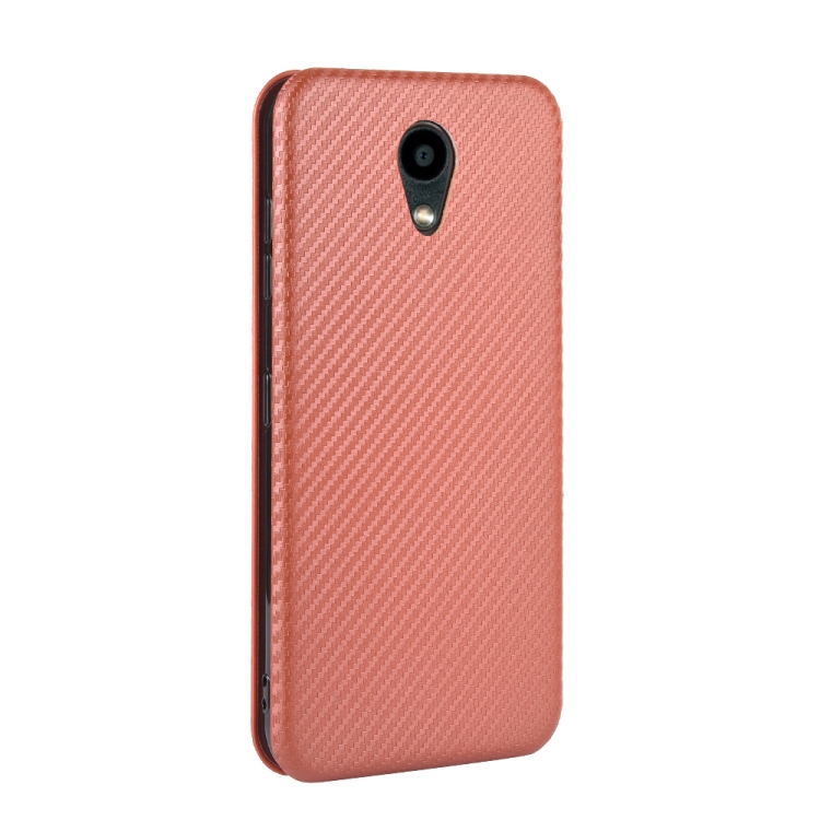 Funda para Kyocera Digno Bx Cuero Fibra de Carbono Magnética con Tapa Horizontal y Ranura (Marrón)