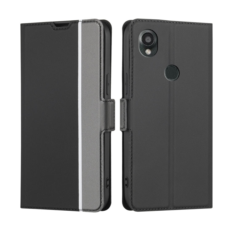 Funda para Kyocera Digno Sx3-Kyg02 de Cuero con Textura de Sarga y Botón Lateral (Negro)