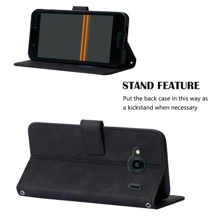 Funda de Cuero Kyocera Qua Phone Qx Kyv42 Crossbody 3D con Tapa En Relieve (Negro)